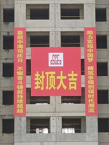 浙江、安徽、山东公司等单位结合近期工程项目封顶、完工等关键节点,通过张贴司庆主题的标语横幅,进行公司品牌宣传,助力业务拓展。